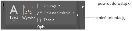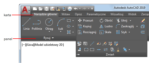 Wstążka udostępnia kompaktową paletę wszystkich narzędzi potrzebnych do utworzenia lub zmodyfikowania rysunku. Może się znajdować w następujących miejscach: