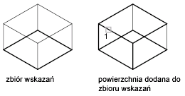 Wybiera wszystkie powierzchnie i dodaje je do zbioru wskazań.