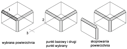 Za pomocą tej opcji można usunąć, a następnie zmienić zaokrąglone i fazowane krawędzie. Powierzchnia nie zostanie usunięta, jeśli wyniki wprowadzonych zmian nie stanowią prawidłowej bryły 3D.