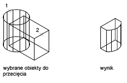 Polecenie ILOCZYN umożliwia utworzenie obiektu złożonego ze wspólnej objętości lub powierzchni dwóch lub więcej nakładających się obiektów. Polecenie ILOCZYN usuwa części, które nie nakładają się na siebie i z pozostałości tworzy obiekt złożony.