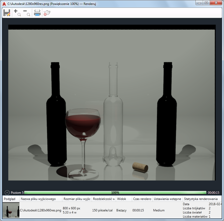 Renderowany obraz dowolnego rysunku jest wyświetlany zawsze w odpowiednim oknie Renderuj.
