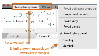 - Kliknij prawym przyciskiem myszy karty wstążki i wybierz polecenie uwolnij.