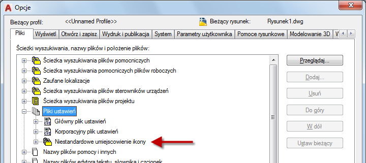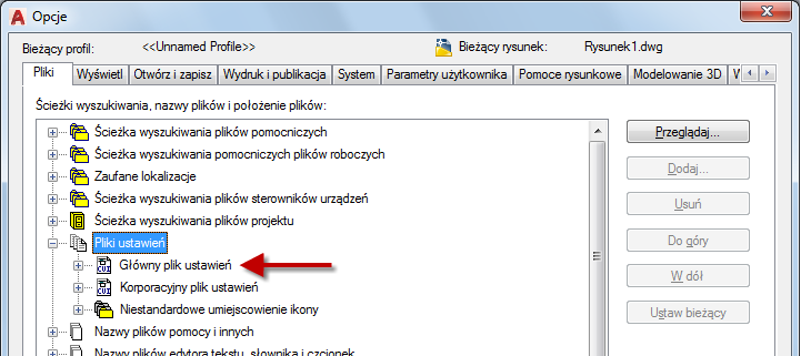 Zmiany wprowadzone w profilach użytkownika są przechowywane w rejestrze systemu Windows i podlegają migracji. Uwaga: Niedostępne w programie AutoCAD LT.