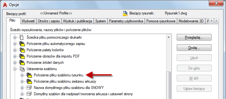 Pliki szablonów rysunków (DWT) służą do tworzenia nowych rysunków. Rysunki utworzone za pomocą pliku DWT zawierają wszystkie style i obiekty rysunkowe zdefiniowane w pliku DWT. Niestandardowe pliki DWT z poprzedniej wersji są migrowane do podfolderu o nazwie utworzonej od wersji programu, z której zostały migrowane; konwencja nazewnictwa podfolderu to Szablony produktu nazwa produktu. Podfolder Szablony produktu nazwa produktu jest tworzony w folderze zdefiniowanym ustawieniem Położenie pliku szablonu rysunku.