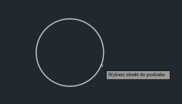 Użyjmy ponownie polecenia PODZIEL, tym razem jednak dzieląc okrąg. Załóżmy, że chcemy go podzielić na sześć równych „kawałków”, jak pokazano na rysunku.