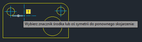 W przypadku odłączenia znacznika środka lub linii środkowej od geometrii dostępnych jest kilka opcji. Zbędny znacznik środka lub linię środkową można usunąć, ewentualnie można je ponownie połączyć z geometrią na rysunku.