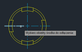 Jeśli jednak znacznik środka zostanie odsunięty od okręgu, zostanie on także odłączony. Jeśli znacznik środka nie jest połączony z obiektem, wyświetlany jest żółty identyfikator, który wskazuje, że jest on odłączony.