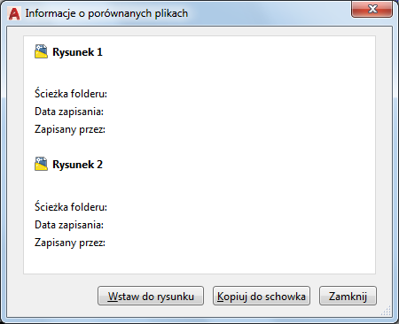 Umożliwia wstawianie lub kopiowanie informacji dotyczących właściwości dwóch porównywanych plików rysunków.