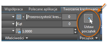 Po uruchomieniu polecenia KRESKUJ na wstążce wyświetlana jest tymczasowo karta Tworzenie kreskowania. Na tej karcie można wybrać wzór z ponad 70 wzorów kreskowania zgodnych ze standardami branżowymi: imperialnych i ISO, a także wiele opcji specjalnych.