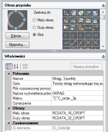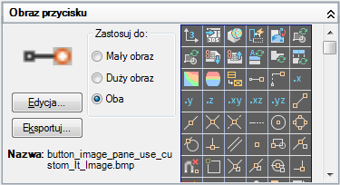 Wybierz obraz z listy obrazów, a jego nazwa zostanie przypisana do właściwości obrazu Mały obraz i/lub Duży obraz wybranego polecenia.