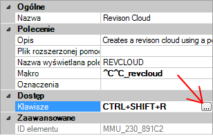 - W panelu Właściwości kliknij pole Klawisze, a następnie kliknij przycisk […], aby otworzyć okno dialogowe Klawisze skrótów.