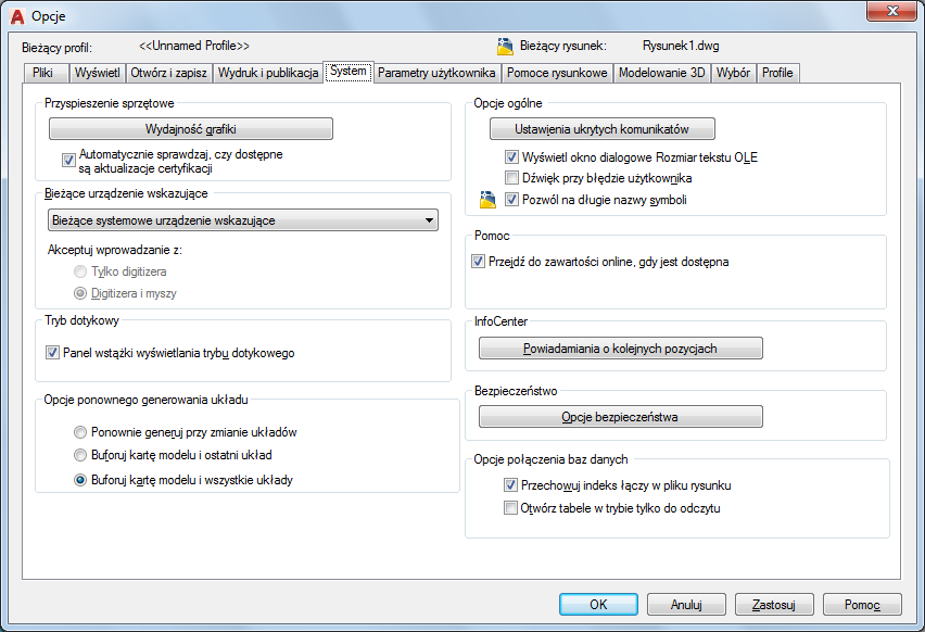 Niektóre opcje pokazane powyżej nie są dostępne w programie AutoCAD LT.