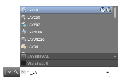 Niektóre polecenia mają skrócone nazwy, czyli aliasy poleceń, które można wpisywać w wierszu polecenia. Zamiast na przykład wprowadzać ciąg okrąg w celu uruchomienia polecenia OKRĄG, można wpisać znak o i nacisnąć klawisz Enter. Na liście propozycji poleceń (jeśli jest wyświetlana) alias znajduje się przed nazwą polecenia: O (OKRĄG)