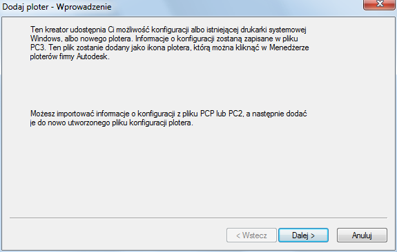 Kreator tworzy plik PC3, który można edytować w Edytorze konfiguracji plotera. Konfiguracje zapisywane są w folderze Plotters.
