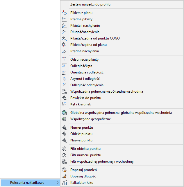 Niektóre polecenia przezroczyste programu Autodesk Civil 3D wymagają podania współrzędnej Z dla rzędnej punktu. Zobacz temat Informacje o ustawieniach poleceń przezroczystych.