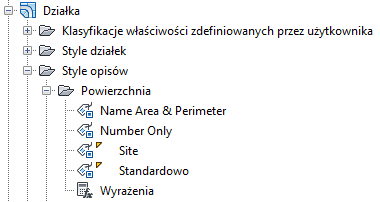 Każdy typ etykiety zawiera styl Standardowy. Szablony rysunku programu Autodesk Civil 3D zawierają również kilka innych stylów etykiet.