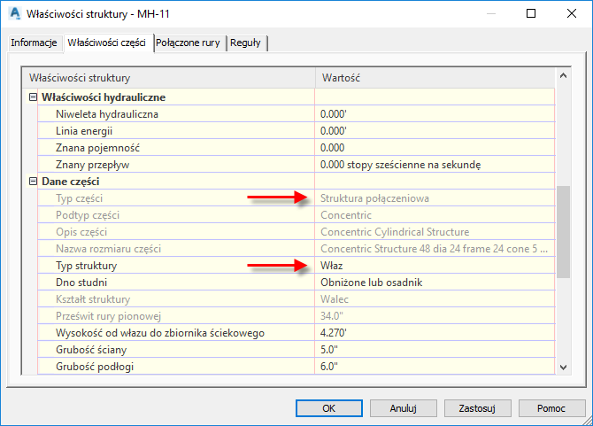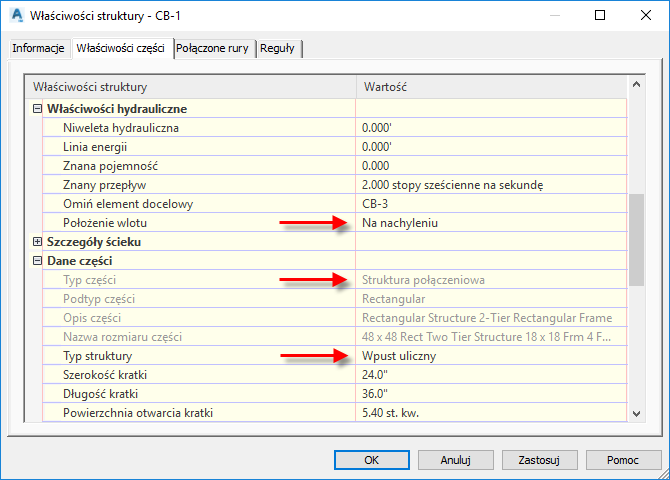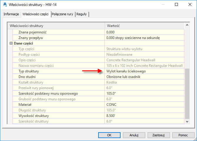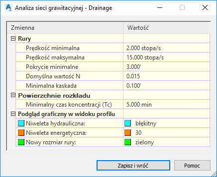 Dzięki odwzorowaniu parametrów i zastosowaniu ich do struktur w istniejących sieciach rurociągów nie będzie wymagane ręczne określanie wartości podczas używania polecenia Analizuj sieć grawitacyjną.