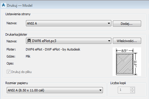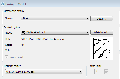 Ustawienia strony w rysunkach utworzonych na podstawie plików szablonów rysunków (DWT)
