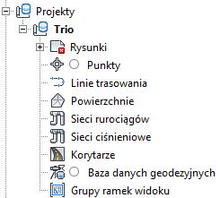 Projekt stanowi kolekcję obiektów, które można udostępniać innym użytkownikom, w tym powierzchnie, linie trasowania, profile, sieci rurociągów, sieci ciśnieniowe i grupy ramek widoku. Wszystkie współdzielone obiekty projektu są wyświetlane w grupach obiektów projektowych w drzewie Nawigator. Członkowie zespołu projektowego mogą tworzyć na rysunkach przeznaczone tylko do odczytu kopie obiektów projektu, nazywane odniesieniami. Ta kopia tylko do odczytu geometrii obiektu projektowego może być użyta do etykietowania, projektowania, analizy i zadań warunkowych.