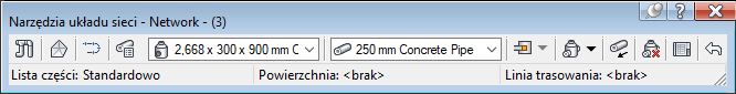 Nazwy listy części, powierzchni i linii trasowania, do których istnieją odnośniki w wybranej sieci przewodów rurowych, są wyświetlone u góry tego paska narzędzi.