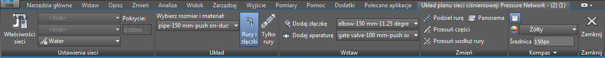 Kliknij przycisk OK, aby wyświetlić wstążkę Układ planu sieci ciśnieniowej.