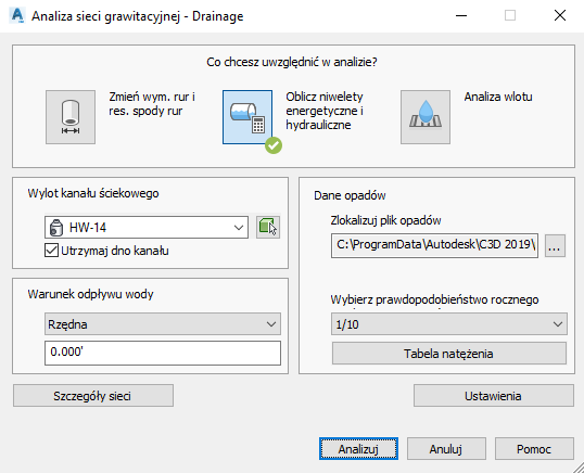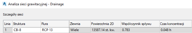Aby uzyskać więcej informacji, zobacz temat Informacje o analizie i wymiarowaniu sieci rurociągów grawitacyjnych.