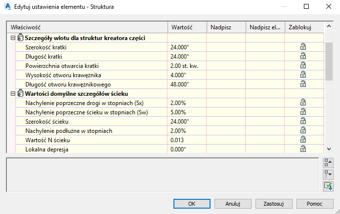 Aby uzyskać więcej informacji, zobacz temat Informacje o analizie i wymiarowaniu sieci rurociągów grawitacyjnych oraz Okno dialogowe Edytuj ustawienia elementu — Struktura.