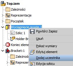 Teraz, gdy użytkownik wybierze oś lub punkt poza wymiarowanym lub wiązanym szkicem, wybrana oś konstrukcyjna lub punkt konstrukcyjny są rzutowane automatycznie podczas dodawania wymiarów lub wiązań.