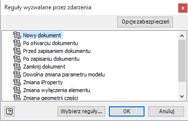 Aby uzyskać więcej informacji na temat zdarzeń wyzwolenia procedur, zobacz temat Praca ze zdarzeniami wyzwolenia procedur w iLogic.