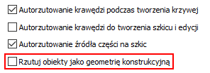 Rzutuj obiekty jako geometrię konstrukcyjną jest wyłączone, należy nadal używać przełącznika