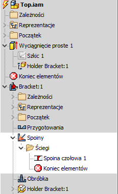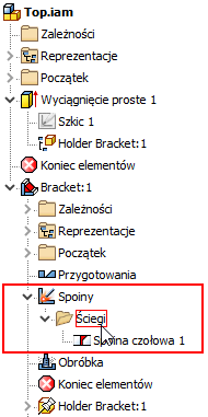 Użytkownik może teraz wybrać ścieg spoiny z podzespołu, aby dodać jako uczestnika w elemencie zespołu w zespole najwyższego poziomu podczas dodawania ściegu spoiny po utworzeniu elementu zespołu.