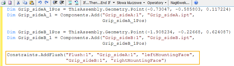 Aby uzyskać więcej informacji dotyczących funkcji obsługiwanych w iLogic, zobacz temat Interfejs API iLogic — odniesienie.