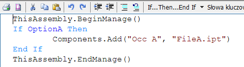 Zasada jest następująca: Za każdym razem, gdy zostanie uruchomiony blok BeginManage/EndManage, należy wywoływać funkcję, aby dodać tylko te komponenty, które mają zostać dołączone do tego bloku.
