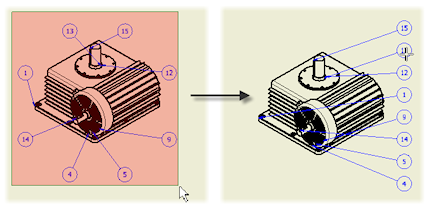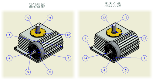Umieszczanie automatycznych numerów pozycji zostało udoskonalone, aby zoptymalizować punkty początkowe numerów pozycji oraz położenie i długość linii odniesienia numerów pozycji.