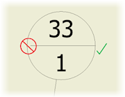 W przypadku wstawiania podzielonego numeru pozycji linia środkowa jest połączona z okręgiem.