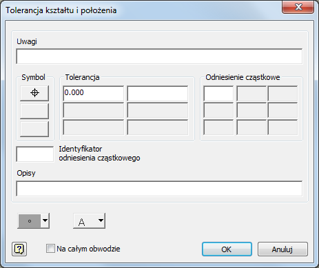 W oknie dialogowym Tolerancja kształtu i położenia dostępne są następujące ulepszenia: