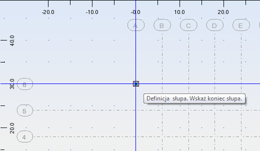 - Umieść kursor w polu Początek i kliknij punkt przecięcia linii siatki A6, aby dodać słup, jak pokazano poniżej.