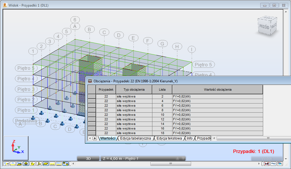 W przeciwieństwie do analizy statycznej, obciążenia w uproszczonej analizie sejsmicznej nie są ustawiane bezpośrednio przez użytkownika; są one obliczane przez program. Użytkownik definiuje parametry w oparciu o lokalne normy budowlane. Następnie oprogramowanie oblicza obciążenia sejsmiczne i stosuje je do konstrukcji. Umożliwia to przygotowanie modelu, w którym można wykonać analizy statyczne sił wewnętrznych i obliczenia odkształceń.