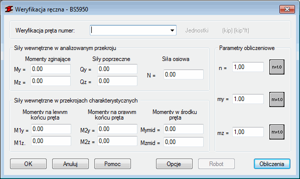 - W polu Parametry obliczeniowe należy określić wartości współczynników: m, my i mz;
