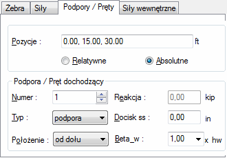 Jeśli siła skupiona pochodząca od reakcji lub pręta dochodzącego nie jest przekazywana punktowo na pas belki, lecz obciąża belkę na pewnej długości docisku, to istnieje możliwość zdefiniowania tej odległości w polu Docisk ss.