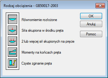 Okno dialogowe poniżej umożliwia określenie schematu obciążenia dla analizowanej belki.