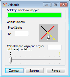 - pole Pręt/Obiekt umożliwia podanie numeru pręta lub obiektu, którego część ma zostać ucięta