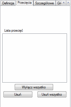 - Usuń — usunięcie wybranego (podświetlonego) przecięcia z listy przecięć.