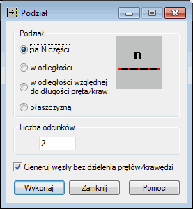 Opcja ta umożliwia podział prętów lub krawędzi obiektów na mniejsze jednostki (segmenty prętów lub krawędzi).