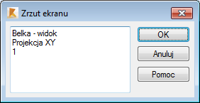 Standardowa nazwa obejmuje: nazwę widoku, w którym został dokonany zrzut ekranu, płaszczyznę rzutowania i numer.