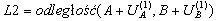 L2 jest odległością pomiędzy węzłami zamocowania A i B odkształconego cięgna: