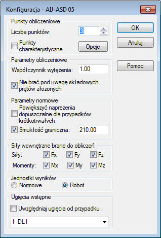 W powyższym oknie dialogowym określone mogą zostać następujące parametry obliczeniowe: