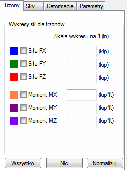 Wyniki sił zredukowanych dla trzonów są również dostępne w tabeli Wyniki / Trzony.