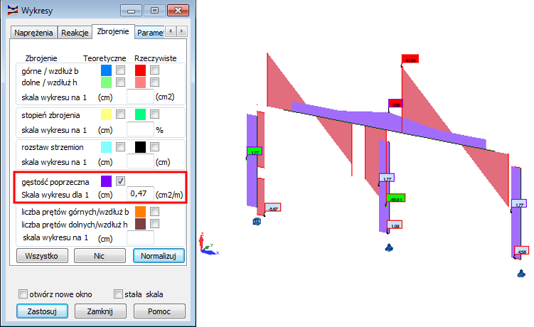 Wykresy dla prętów. Zobacz temat Schematy zbrojenia.