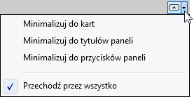 | określić preferowaną metodę minimalizowania wstążki | na prawo od sekcji kart wstążki kliknąć strzałkę w prawo i wybrać żądane zachowanie: Minimalizuj do kart, Minimalizuj do tytułów paneli, Minimalizuj do przycisków paneli lub Przechodź przez wszystko.